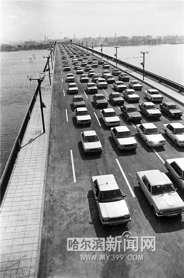 1986年9月20日,并排5輛轎車通過松花江公路大橋。當日,總投資2.15億元的哈爾濱松花江公路大橋建成通車。該工程是“六五”期間國家重點建設工程之一。大橋全長1588米,其中主橋1198米;橋面凈寬24米,行車道19米,人行道兩邊各2.5米,是全國千米以上公路大橋最寬的。