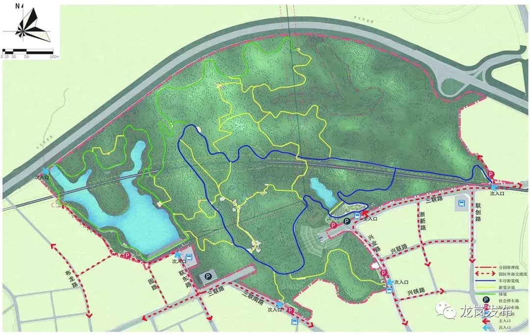 公園占地面積為161.79公頃,以自然山地、叢林、水庫湖泊等現(xiàn)狀元素為景觀基底,以保護、優(yōu)化及恢復(fù)自然生態(tài)系統(tǒng)為前提,集生態(tài)、運動休閑、文教于一體的市屬郊野公園。