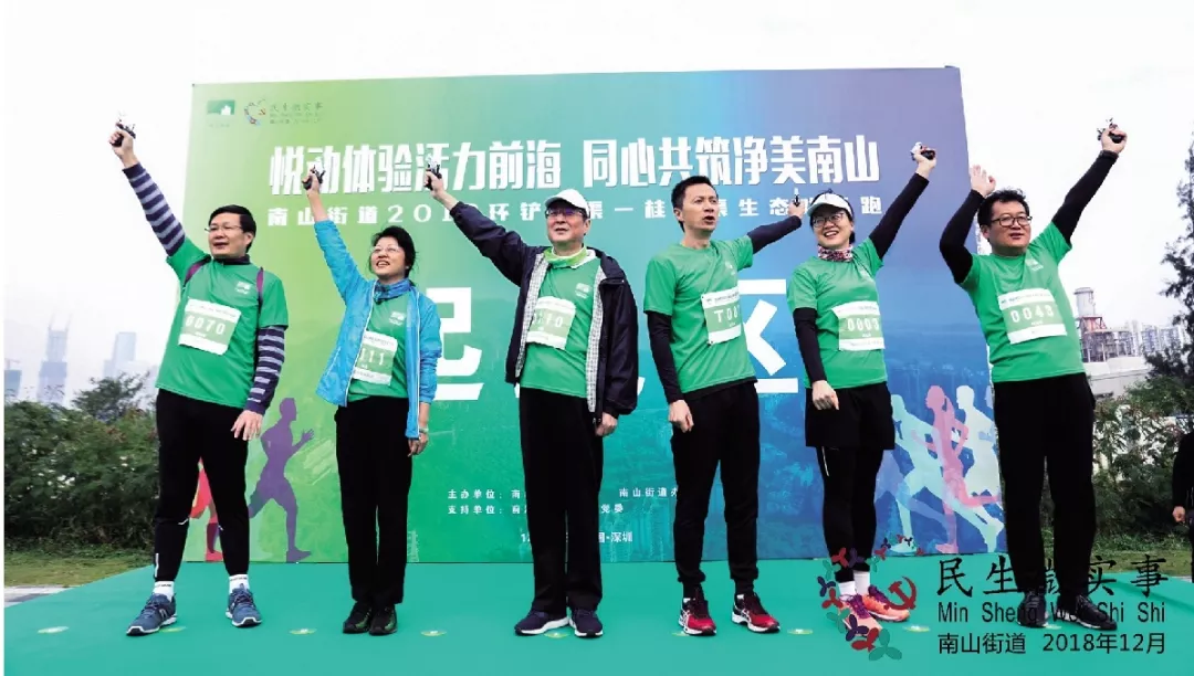 2018年12月31日下午3時,南山區(qū)政協主席陳軍,區(qū)委常委、政法委書記黃湘岳,區(qū)委常委、區(qū)委(政府)辦公室主任胡蕓,區(qū)人大常委會副主任、區(qū)總工會主席路玉萍,區(qū)人大常委會副主任鄧志榮,南山街道黨工委書記杜煒平,南山街道辦事處主任黃北球同時打響發(fā)令槍,南山街道2018環(huán)鏟灣渠-桂廟渠生態(tài)歡樂跑正式開跑,900余名跑步愛好者從前灣四路鏟灣渠河畔起跑,朝前海石快樂奔跑。
