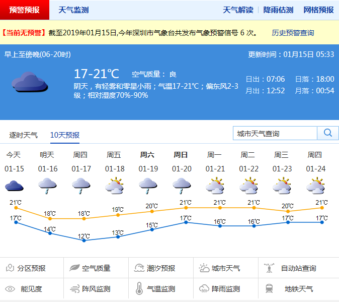 據(jù)悉,截至1月13日,深圳市國家氣候觀象臺記錄到4天灰霾日,比去年同期增加1天,在近十年排名第五,分別為1月5日、7日和11-12日,均出現(xiàn)了全市性的灰霾天氣,期間最嚴(yán)重的灰霾時段出現(xiàn)在12日,大部分地區(qū)能見度在3公里以下,為輕度至中度灰霾。13日開始能見度上升,灰霾天氣有所好轉(zhuǎn),空氣濕度大,全市記錄到輕霧。截至目前1月份市氣象臺共發(fā)布了3次灰霾預(yù)警和2次大霧預(yù)警。