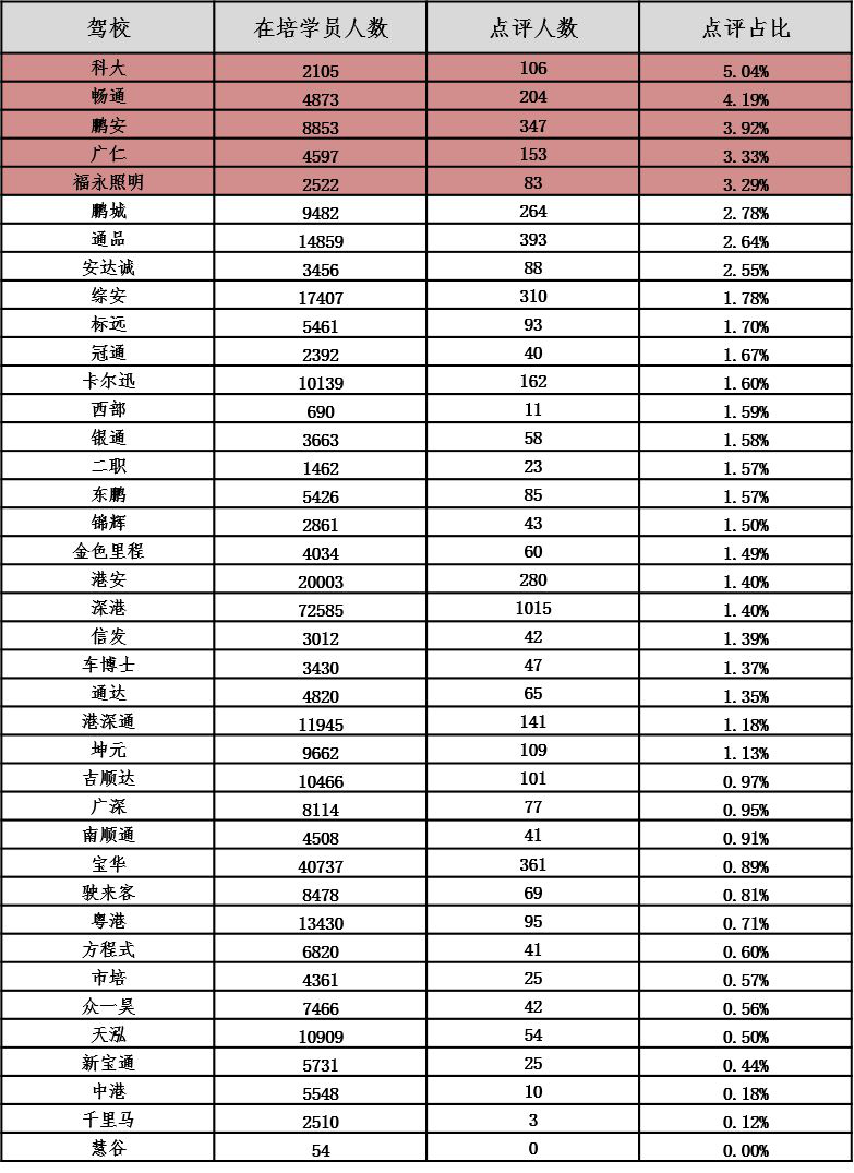 最新深圳駕校排行榜出爐!學(xué)員考試合格率最高的是……