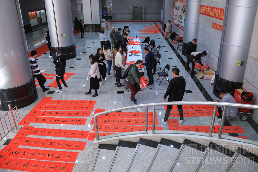 深圳商報大廈一樓變成春聯(lián)的世界