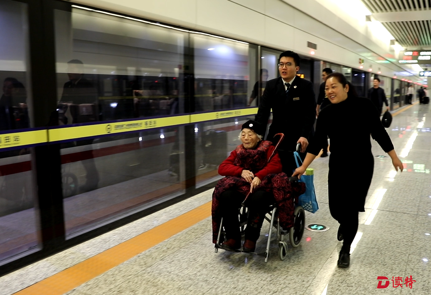 前兩天,站里剛剛接到過一位返鄉(xiāng)老人對(duì)李樹森的表揚(yáng)。70歲的旅客張爺爺帶著坐在輪椅上90多歲的老母親,在福田高鐵站坐高鐵回駐馬店老家過年,由于年紀(jì)太大又是第一次來到這里坐車,因此特別不知所措?!霸诤蜍囀遥±钜豢吹轿覀兙椭鲃?dòng)上來幫忙了,又是推輪椅又是拿行李,怕我們被擠到摔倒,帶我們提前走特殊通道檢票,一路把我們送上車。到了車上,他還專門叫來乘務(wù)員,仔細(xì)交代我倆的情況。如果沒有他,我們兩個(gè)老人家,這次都不知道能不能順利到家呢!”張爺爺在電話里感激地說道。
