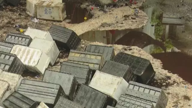 (強酸電池廢液滿地橫流)