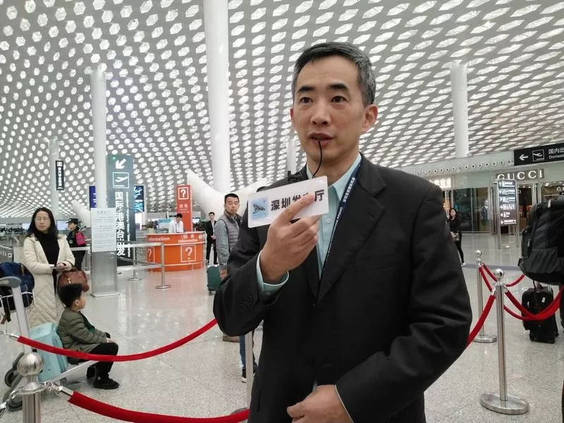 深圳機場T3航站樓航站區(qū)管理部黨支部書記陳進泉介紹,每年春運期間機場對廣大離深旅客送春聯(lián)的活動,這次與深圳發(fā)布廳合作,邀請寶安區(qū)書法家協(xié)會書法家給廣大旅客送“?!?把祝福帶到全國各地,很有意義。他祝福大家新春快樂,闔家安康。