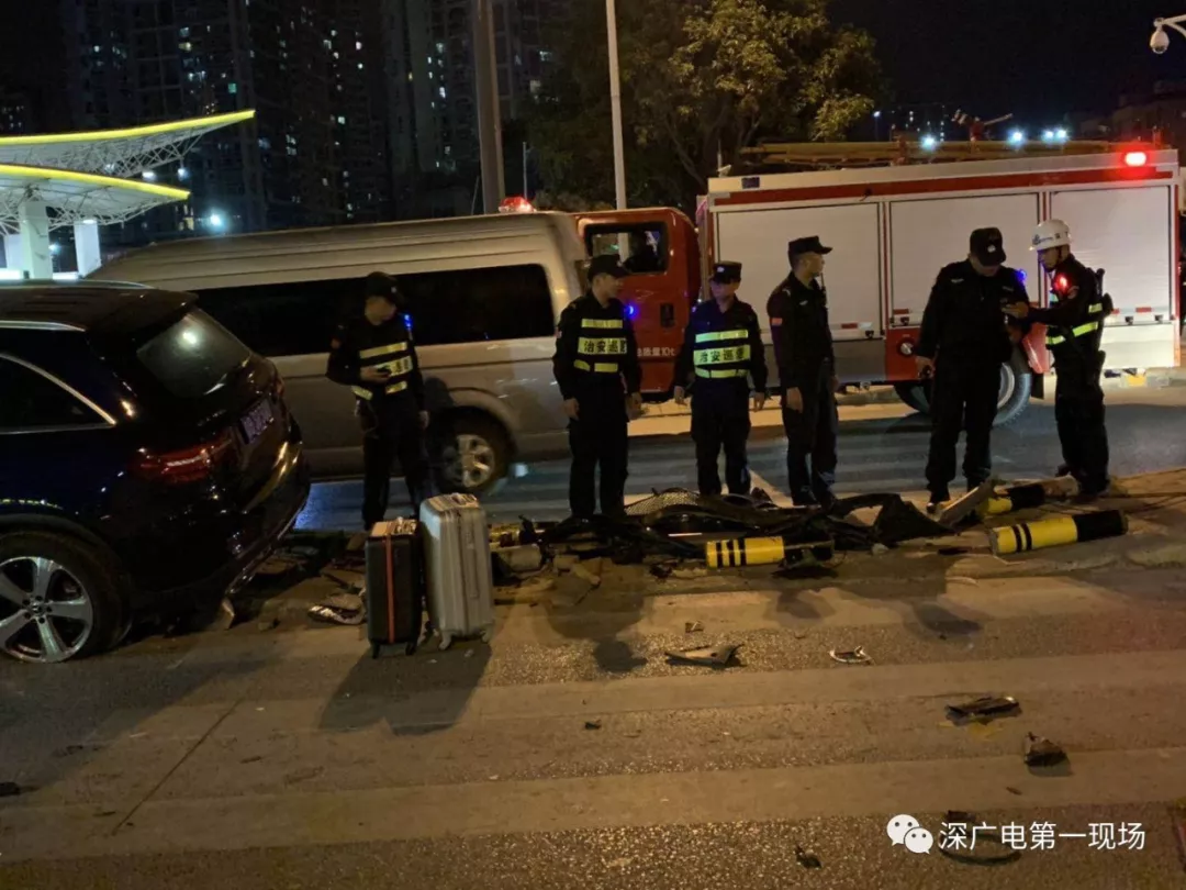 深廣電第一現(xiàn)場(chǎng)2019年2月2日訊 1月31日晚上10點(diǎn)在新安六路和新湖路的交匯處,一輛黑色奔馳轉(zhuǎn)彎時(shí)高速撞上了安全島,開車的司機(jī)到底是怎么了,才會(huì)把車開成這個(gè)樣子?