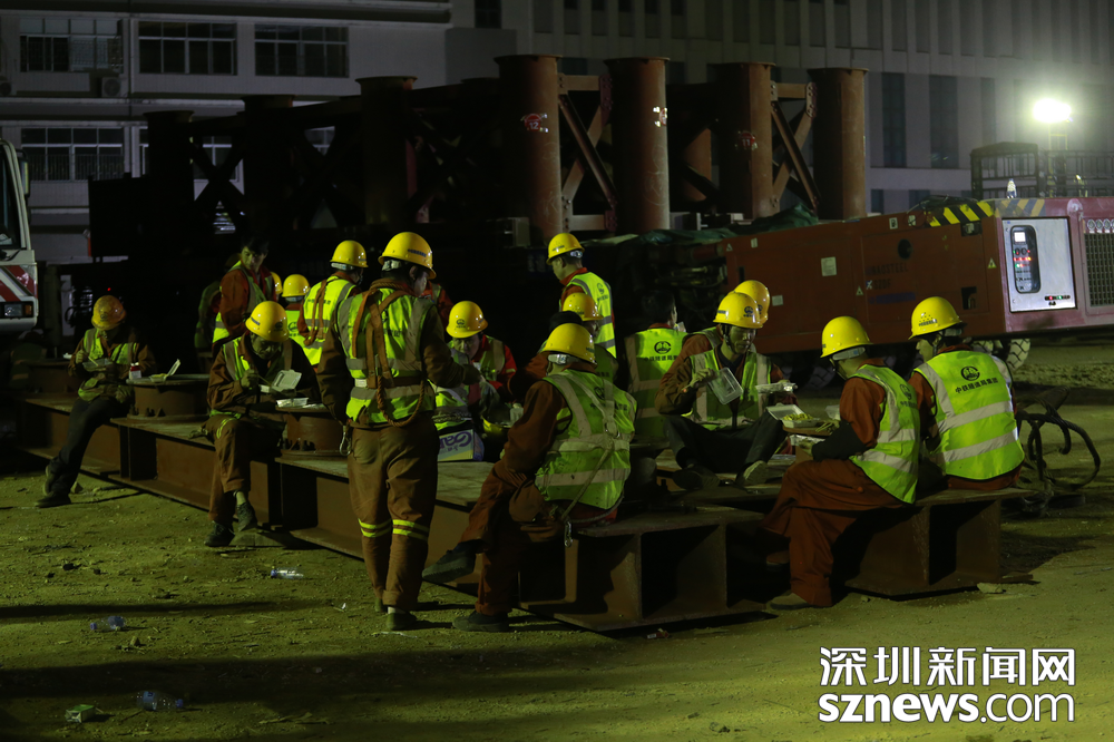 即便深夜,工地上仍燈火通明。