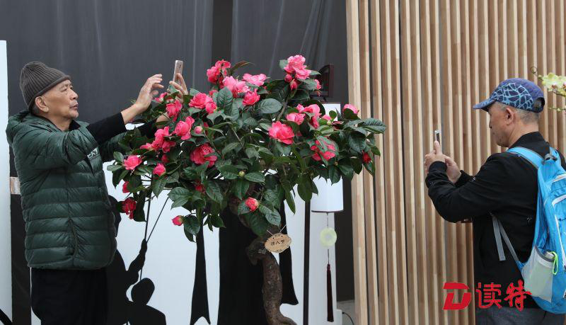 花卉館內(nèi)的室內(nèi)展區(qū)是此次茶花展的一大亮點(diǎn)。"佳境"、"夢(mèng)境"、"意境"、"秘境"、"禪境"5個(gè)觀賞區(qū),營造出不同的茶花文化意境。其中"佳境"將擺放特色茶花盆栽,讓游人進(jìn)入到茶花營造出的簡潔雅致的意境中;"夢(mèng)境"利用"古樹"結(jié)合展示茶花插花藝術(shù),打造了夢(mèng)幻的展示空間;"意境"以茶花切花花藝作品為主,結(jié)合茶花本身的特性與中式元素,展示意境唯美、充滿古韻的茶花插花作品。"我最喜歡‘秘境’,茶花盆景和山水盆景配上中式花幾和屏風(fēng),是濃縮的雅致山水呀。"63歲的孟先生由衷贊賞,"這是以情調(diào)韻味取勝,太美了!"而他的老伴喬阿姨則最喜歡"禪境":"茶花盆景搭配中式鏤空屏風(fēng),簡直像一幅畫,水中還有倒影虛實(shí)結(jié)合,很有意境?。?/p>
