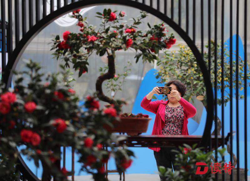 大年初五,天氣溫暖舒適,園博園里的游客一撥接一撥。也許是對(duì)中式傳統(tǒng)風(fēng)格的青睞,被茶花展吸引的客流中有不少中老年游客。"天氣好,花也美,美好的景色人人愛看,人老了心還沒老,也過來賞賞花拍拍照,高興!"年近七十的王阿姨非常開心地說。
