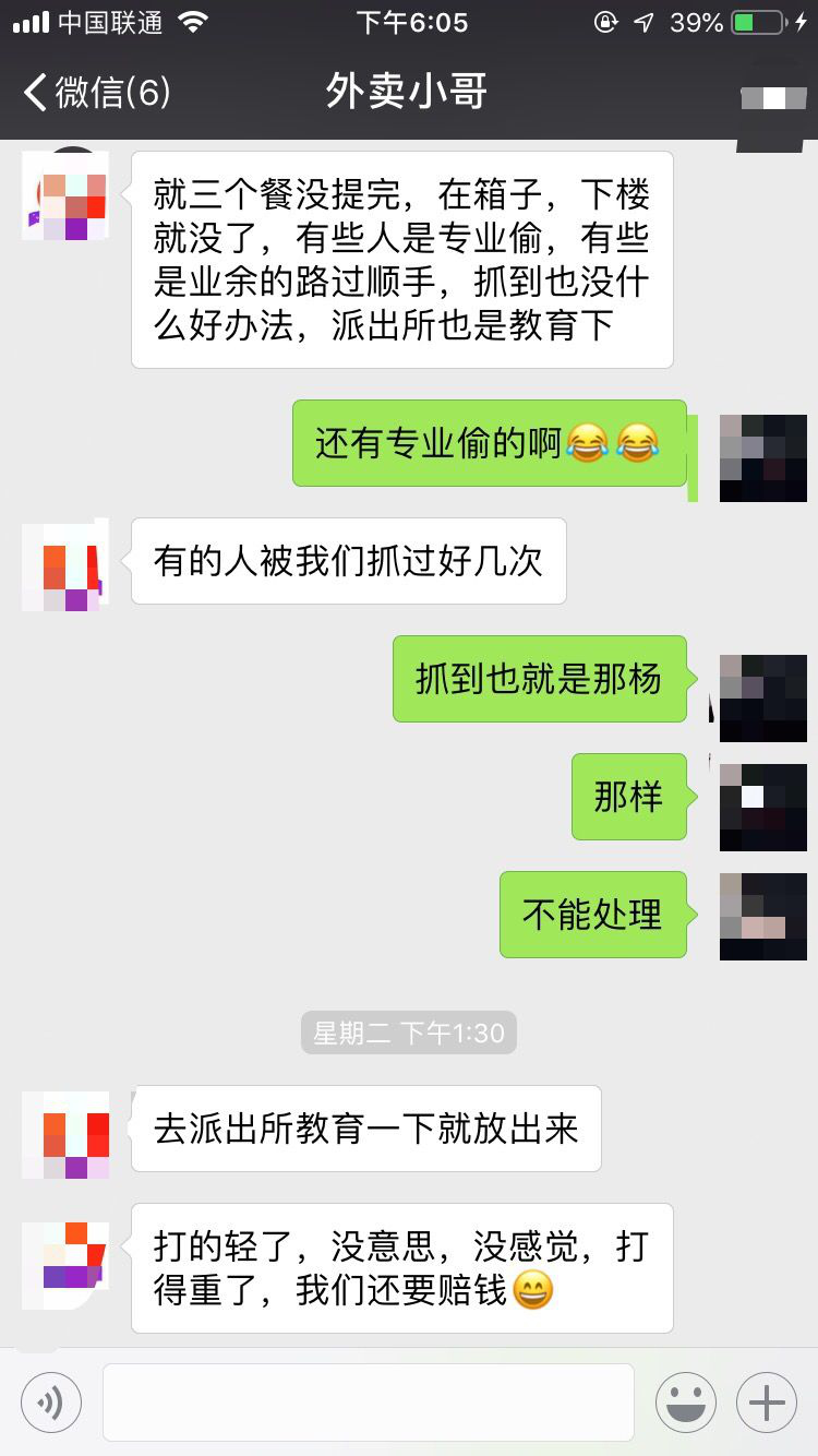這是顏先生送外賣(mài)兩年多來(lái)第一次送餐被偷。他介紹,其他同事也遭遇過(guò)同樣的情況,有些人是專(zhuān)業(yè)偷,有些是路過(guò)順手牽羊。"有的人被我們抓到好幾次,但也沒(méi)辦法,我們不能打他。"顏先生介紹,由于被盜外賣(mài)價(jià)值不高,頂多200元,報(bào)警作用并不大,況且他們還要抽時(shí)間做筆錄,直接影響騎手們繼續(xù)送單,所以大家報(bào)警意愿并不強(qiáng)烈。