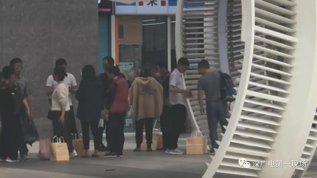 今天中午,記者來到了深圳南山區(qū)海岸城,走到廣場上,遠(yuǎn)遠(yuǎn)就看到一條長長的隊伍排在一家名為“鮑師傅”的糕點店門前。在隊伍的末尾,幾名男子提著鮑師傅的袋子,不斷向過往的市民兜售。