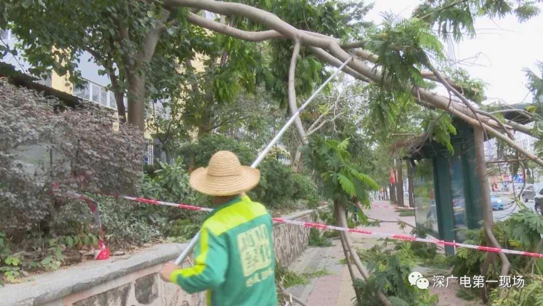 園林養(yǎng)護(hù)公司相關(guān)負(fù)責(zé)人介紹,這棵樹的樹名叫做南洋楹,記者觀察發(fā)現(xiàn),該路段種植的樹木基本都屬于這一樹種,但唯獨(dú)這一棵出現(xiàn)了樹枝折斷的情況。記者還在旁邊發(fā)現(xiàn)了一棵同樣的樹,樹干已經(jīng)被折斷,劉先生說,這還是去年9月份,被臺(tái)風(fēng)山竹吹斷的。像今天這種風(fēng)平浪靜的情況下斷枝,非常少見。