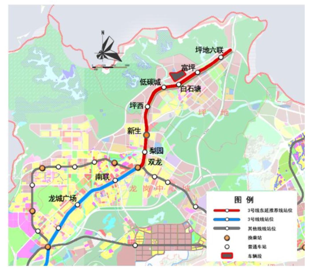 3號(hào)線東延線連接后福、新生、低山、坪西、坪地、坪東以及龍崗中心等地區(qū),并通過(guò)已建成運(yùn)行的3號(hào)線連接至福田中心區(qū),是聯(lián)系坪地中心與龍崗中心、橫崗中心、布吉中心、羅湖中心以及福田中心的城市軌道干線。線路全長(zhǎng)約9.4km,其中地上線約2.0km,地下線約7.4km。
