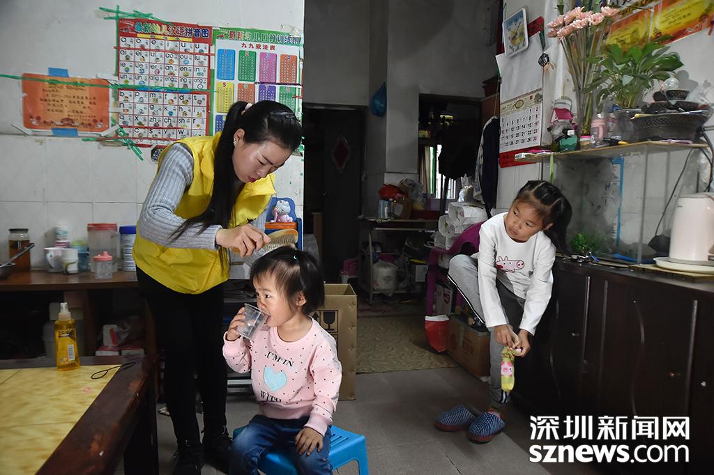 陳永美在為剛起床的小女兒欣瑤梳頭,這是每天的“固定動(dòng)作”,只要有時(shí)間,她便愿意為女兒們做一些事情