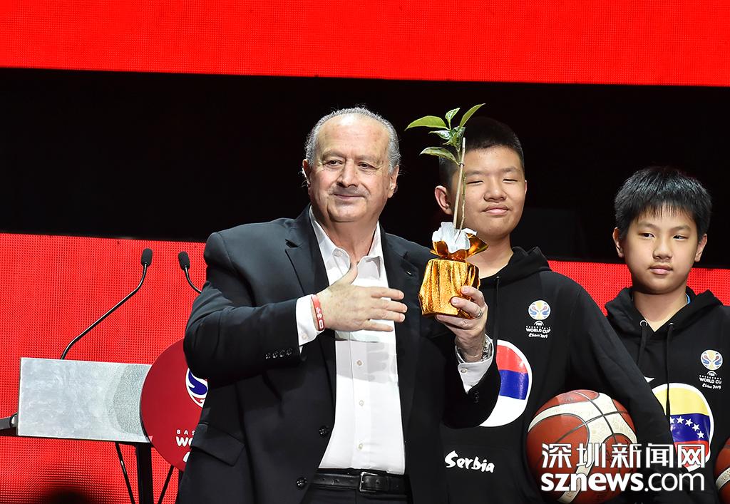 國際籃聯(lián)主席霍拉西奧·穆拉托雷在活動(dòng)中被贈(zèng)予盆栽
