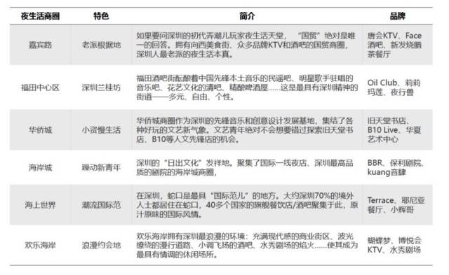 最后,報告總結(jié)出深圳六大夜生活聚集地,體現(xiàn)出深圳不同時代的生活類型與氣質(zhì)。
