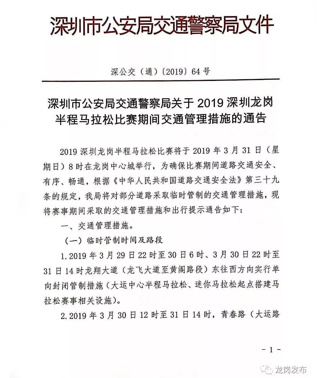 3月29日22時至30日6時、3月30日22時至31日14時龍翔大道(龍飛大道至黃閣路段)東往西方向?qū)嵭袉蜗蚍忾]管制措施(大運中心半程馬拉松、迷你馬拉松起點搭建馬拉松賽事相關(guān)設(shè)施)。