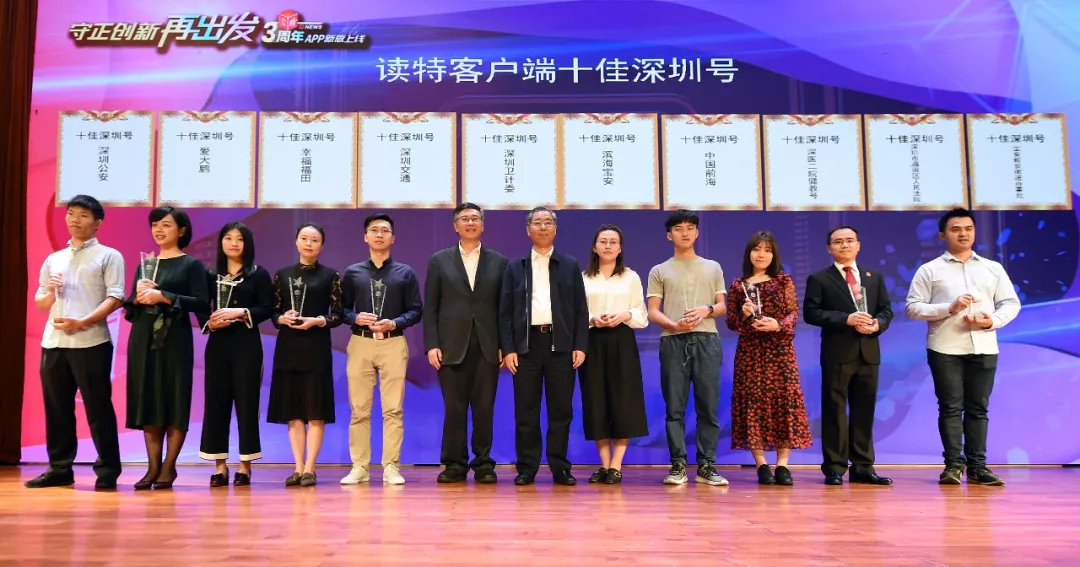 活動現(xiàn)場,根據(jù)發(fā)稿量、發(fā)稿質(zhì)量、傳播力、影響力等綜合數(shù)據(jù)的評比分析,讀特客戶端評選出10佳入駐深圳號。