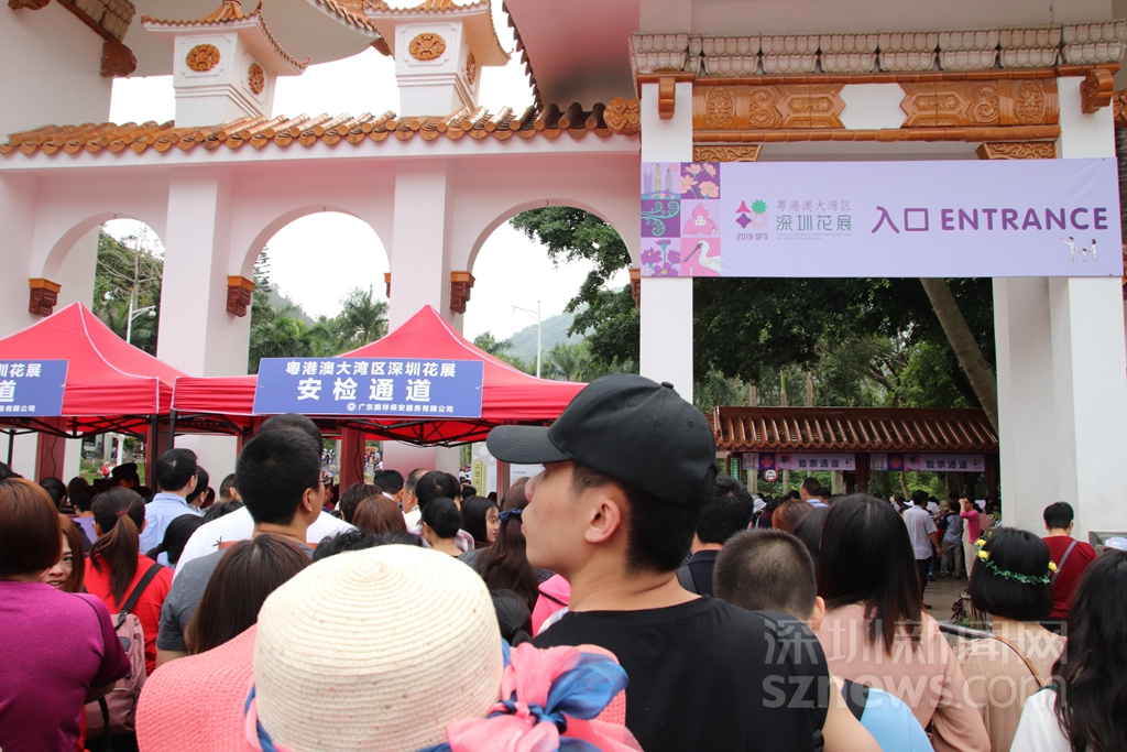 仙湖植物園入口處,排隊(duì)的人需經(jīng)過安檢,再進(jìn)入檢票通道