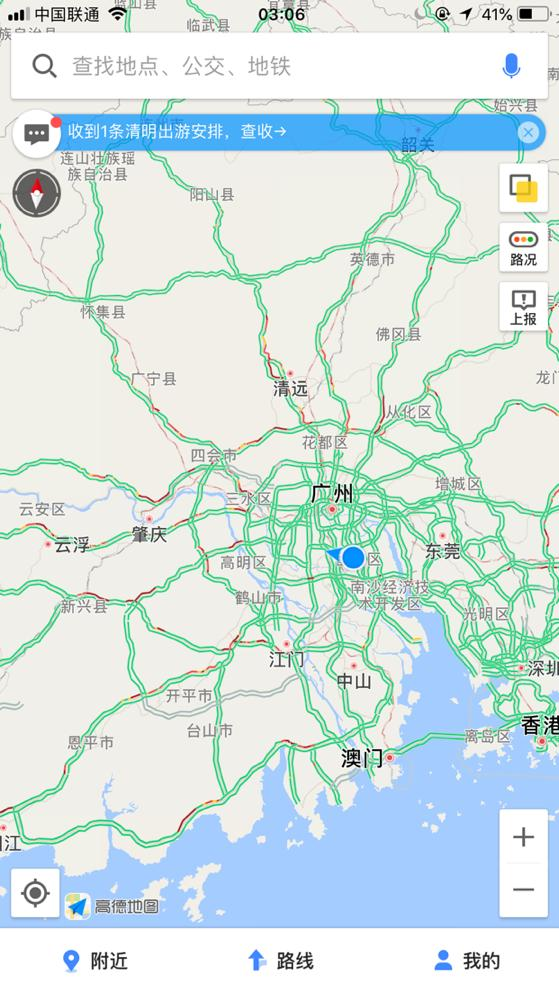 最后看看我們大廣東的路況,凌晨3點(diǎn)06分,廣州周邊明顯多了許多紅色“毛毛蟲(chóng)”,每一條“毛毛蟲(chóng)”的迷人紅色,想必都是各位司機(jī)大佬用車(chē)燈刷出來(lái)的!