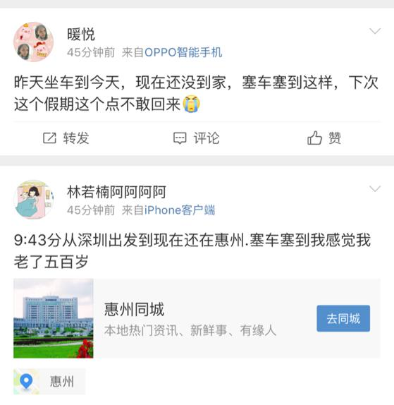 有坐大巴的朋友因為塞車時間遠超預(yù)期,遇上手機快沒電,心急不已,只能斷斷續(xù)續(xù)地開了又關(guān)機,以便與接他的家人保持聯(lián)系又留住最后一點電量。而家人也在當(dāng)?shù)乜h城等了他四五個小時。