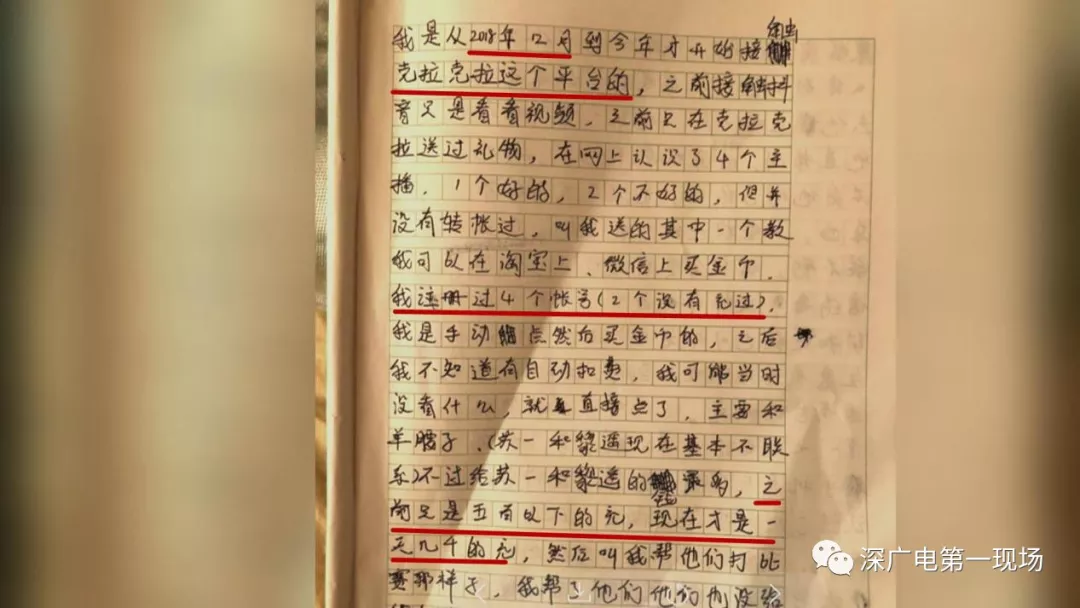 洋洋的媽媽說,發(fā)現(xiàn)自己的女兒刷掉了200萬,就要求女兒寫了一份檢討書。洋洋在檢討書上說,除了平時在平臺上進行互動,主播還跟自己加了微信好友,平時對自己特別關(guān)心,聊天的內(nèi)容好像關(guān)系很密切,說的話也都推心置腹一般,其中一個主播還說了,要和洋洋共同自殘?!