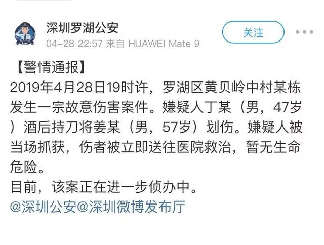 黃貝嶺發(fā)生持刀傷人事件,男子酒后行兇被當場抓獲