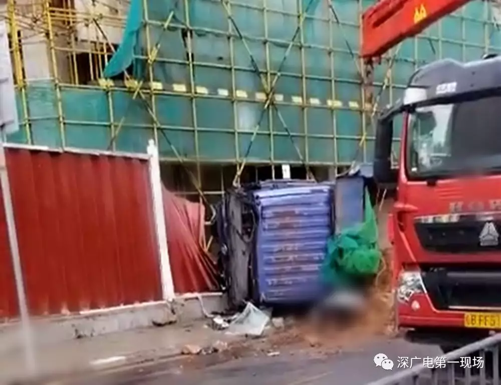 羅湖一渣土車道路側翻,車頭已嚴重變 ...