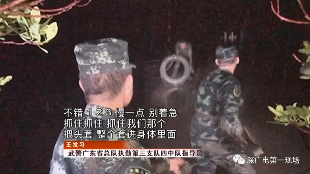 由于深圳灣海水退潮后淤泥深淺不一,直接下海救人非但沒把握,還是魯莽行為,在觀察現場情況,并對救援進行科學研判后,武警官兵們通過拋投救生圈進行救援。