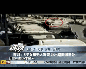 從監(jiān)控視頻可見,一輛白色小車正常行駛通過,這時,一名扎著馬尾辮的女童突然從路旁沖了出來。