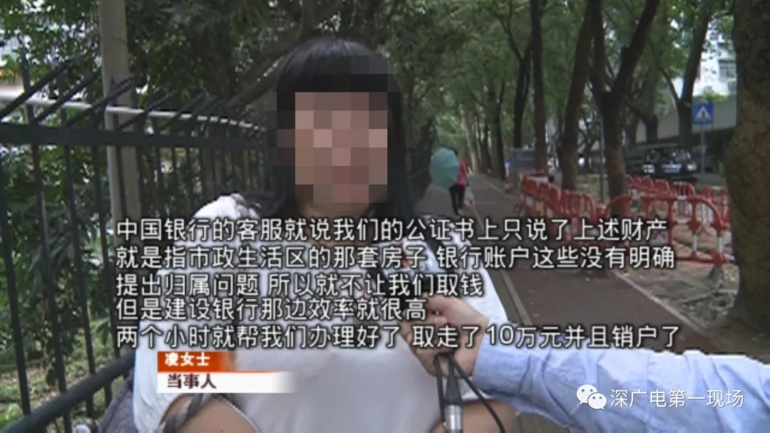 建設(shè)銀行賬戶的10萬(wàn)元,凌女士和婆婆周女士拿著相關(guān)資料,順利取款并做了銷戶處理。但是她們?nèi)サ街袊?guó)銀行福田支行時(shí),卻被銀行柜臺(tái)以公證書中未明確銀行賬戶歸屬為由,拒絕辦理取款銷戶業(yè)務(wù)。
