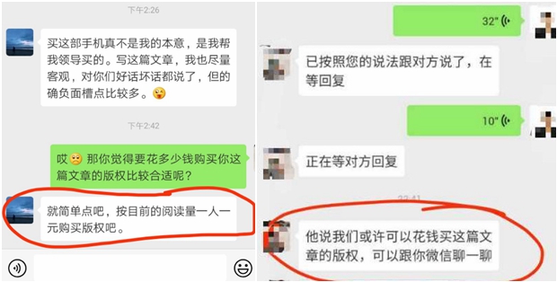 記者問:柔宇提到自媒體作者要求按閱讀量索要版權(quán)費(fèi),柔宇已報(bào)案。請問,憑微信聊天記錄頁面是否形成證據(jù)鏈,法院會采信嗎?