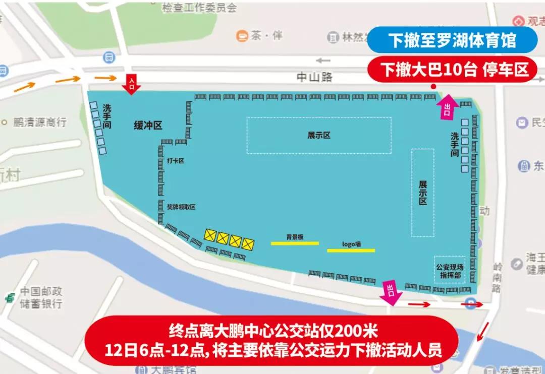 深圳大運(yùn)中心(起點(diǎn):0KM)→龍飛大道→龍翔大道→愛南路→龍崗河綠道→沙荷路→大望文化高地→望桐路→梧桐山村→梧桐驛站(補(bǔ)給點(diǎn):28.4KM)→譚仙廟→小三洲(二簽及強(qiáng)制下撤點(diǎn):39.8KM)→云海谷體育公園(補(bǔ)給點(diǎn)及強(qiáng)制下撤點(diǎn):45.7KM)→光背村→上坪水庫(kù)(53.6KM)→小梅沙(強(qiáng)制下撤點(diǎn):57.3KM)→紅花嶺→坪山體育中心(三簽:56.9KM)→比亞迪路→金業(yè)大道→葵涌文化廣場(chǎng)(補(bǔ)給點(diǎn):69KM)→官湖綠道→大鵬文化廣場(chǎng)(終點(diǎn):85KM)