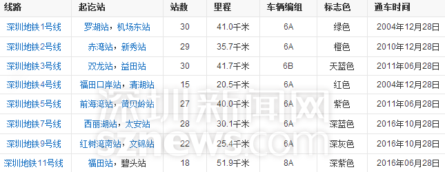 深圳地鐵目前正在運營的線路信息↑