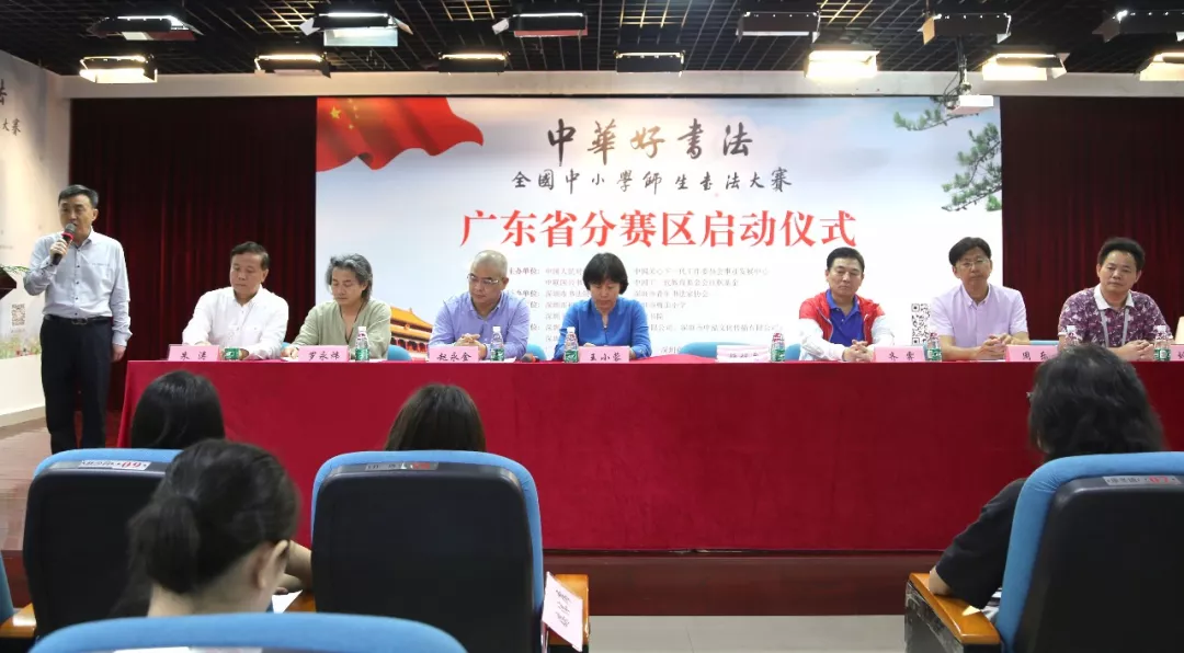 原深圳市文聯(lián)副主席、“中華好書法”全國中小學師生書法大賽書法大賽組委會副主任兼廣東省分賽區(qū)組委會主任顧煥金,在啟動儀式上他從政治意義,文化意義及時代意義三個方面,闡述了這次大賽的重要性、必要性。并向全省中小學師生發(fā)出了邀請,他希望廣大師生積極參與本次大賽,以高水平的書法作品展示廣東中小學師生的書法藝術(shù)水平,并通過本次大賽,進一步弘揚祖國優(yōu)秀傳統(tǒng)文化,助力全省書法教師隊伍建設(shè),推動中小學書法教育的健康發(fā)展,促進優(yōu)秀傳統(tǒng)書法及書法精神的滲透與傳播。