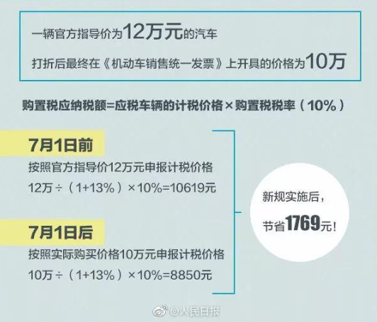 7月1日起,消費者購買車輛應(yīng)扣稅款將取決于實際支付金額