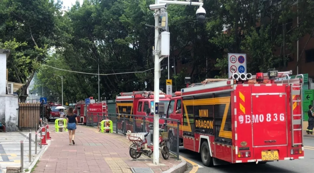路邊停滿了消防車
