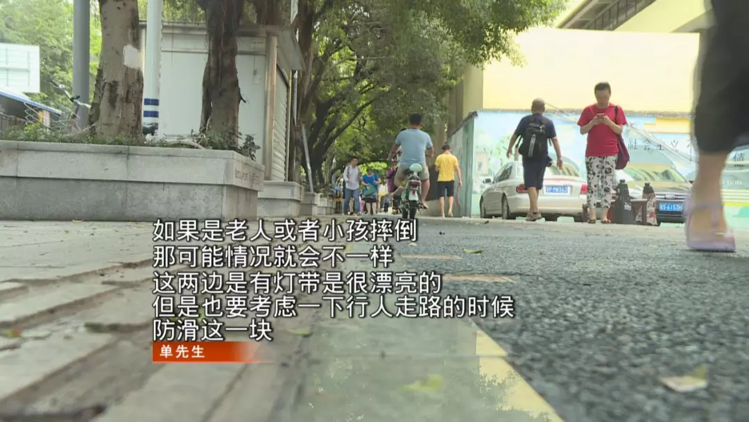 他們最近幾天也關注到了燈帶濕滑的問題,目前已經(jīng)和人行道設計單位制定了改進方案。