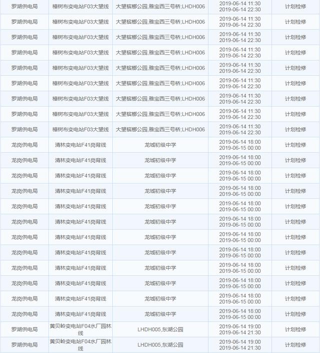 南方電網(wǎng)發(fā)布6月13日至6月16日深圳停電計劃 涉及多個區(qū)