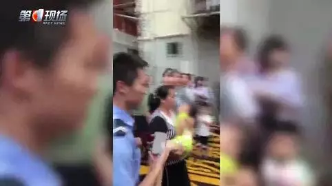 在現(xiàn)場一名女士把女童抱起,