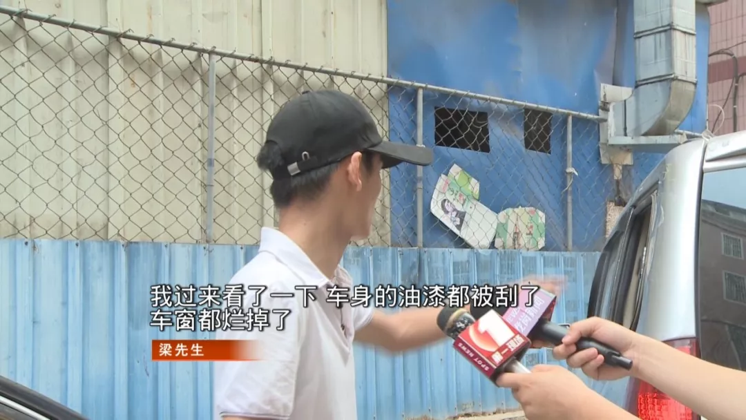 陳先生趕回家,發(fā)現(xiàn)自己的愛車車頂被刮花了好幾處,引擎蓋和前擋風(fēng)玻璃上到處都是玻璃碴。