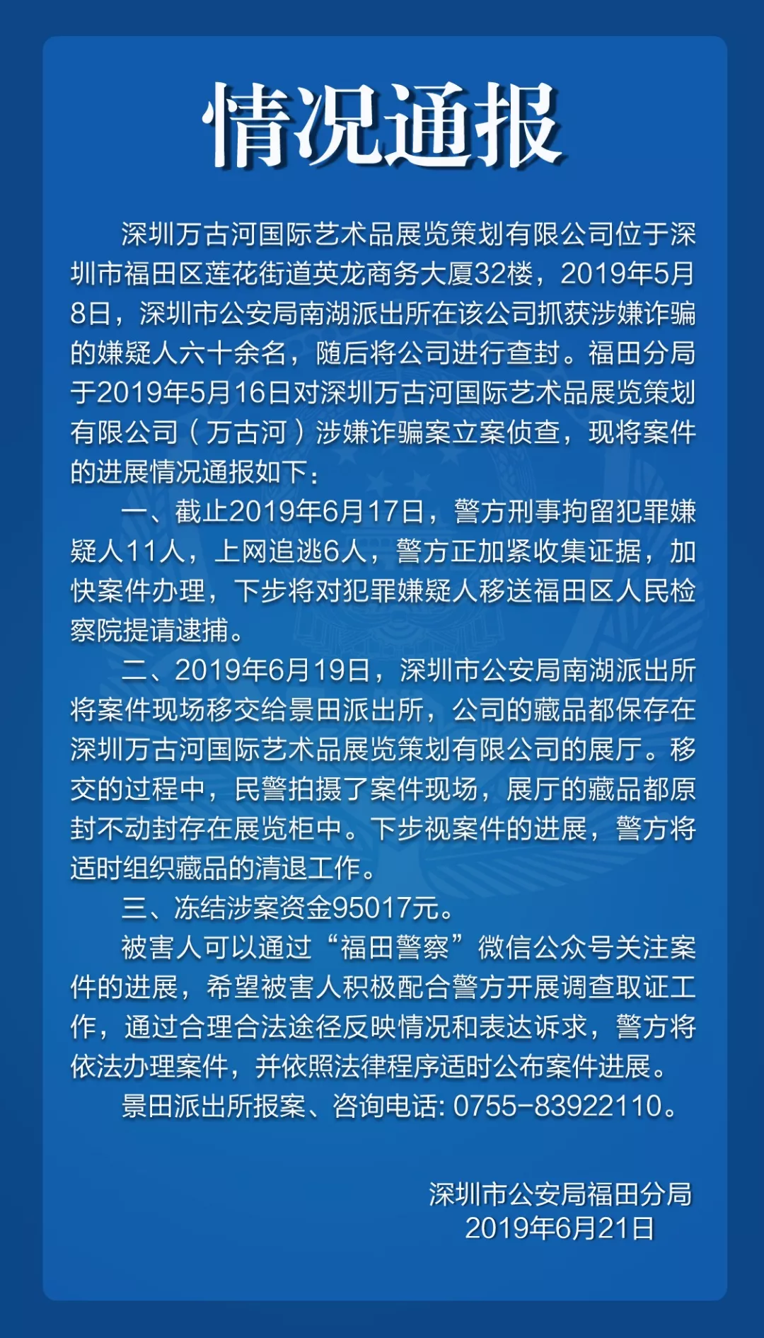 關(guān)于深圳萬(wàn)古河公司涉嫌詐騙的情況通報(bào)