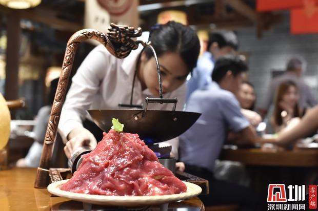 這道堂烹酸菜牛肉,豈止于嫩!肉片厚、大,與鍋中的酸菜共煮,煮久不老。據(jù)說只有深圳分店才有的新品,符合本地食客口味。