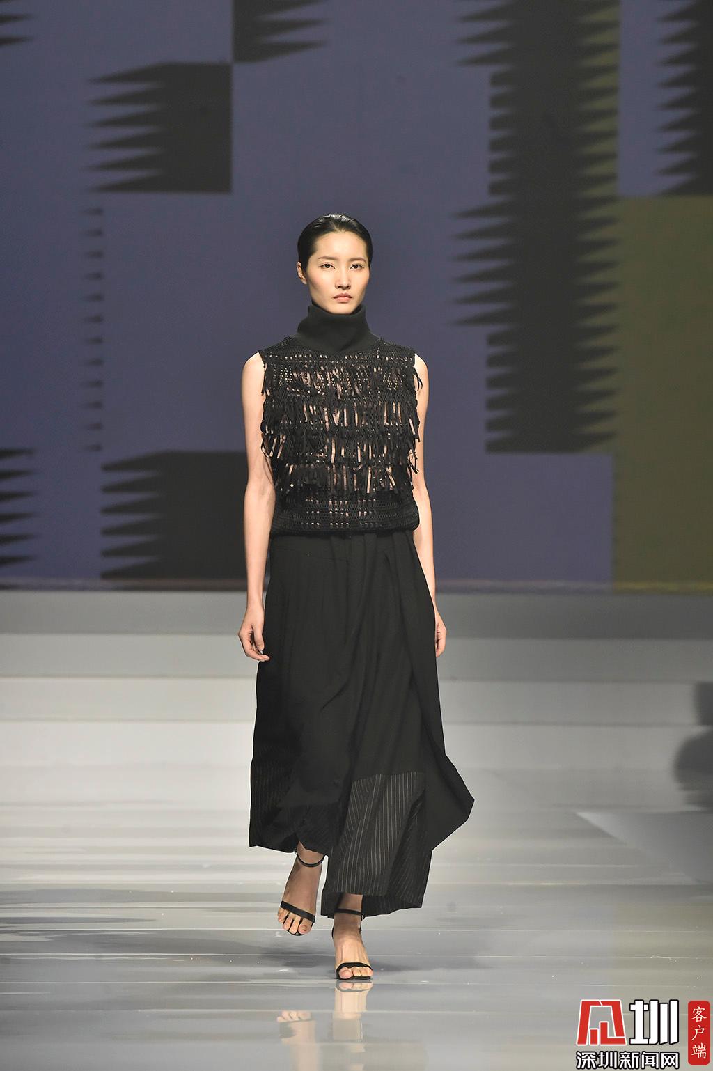 時裝優(yōu)秀學生組展示環(huán)節(jié),設計師肖榕作品,其作品以純黑色系為主
