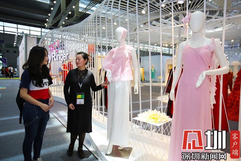 前來觀展的羅女士表示,“這個展館的服裝手感舒適,壓褶圖案比較精美,好看?!?/p>
