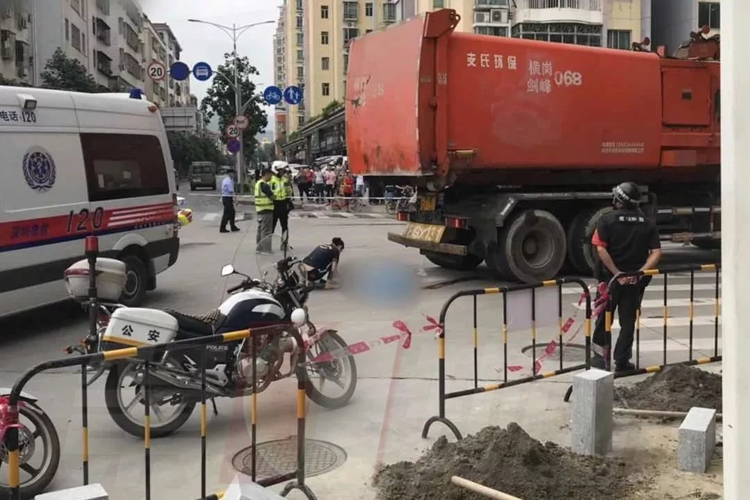 遭遇一輛右轉(zhuǎn)彎的垃圾運(yùn)輸車碾壓