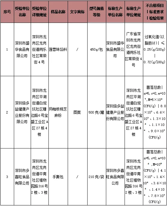 本次共抽檢生產(chǎn)環(huán)節(jié)食品291批次,涉及生產(chǎn)環(huán)節(jié)經(jīng)營(yíng)主體168家次,共檢測(cè)食品指標(biāo)3219項(xiàng)次。其中檢出不合格樣品3批次,涉及不合格食品類別有其他食品1批次,方便食品1批次,糕點(diǎn)1批次;涉及不合格項(xiàng)目類別為微生物污染、品質(zhì)指標(biāo)。