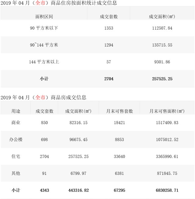 2019年4月深圳商品(住)房成交信息表