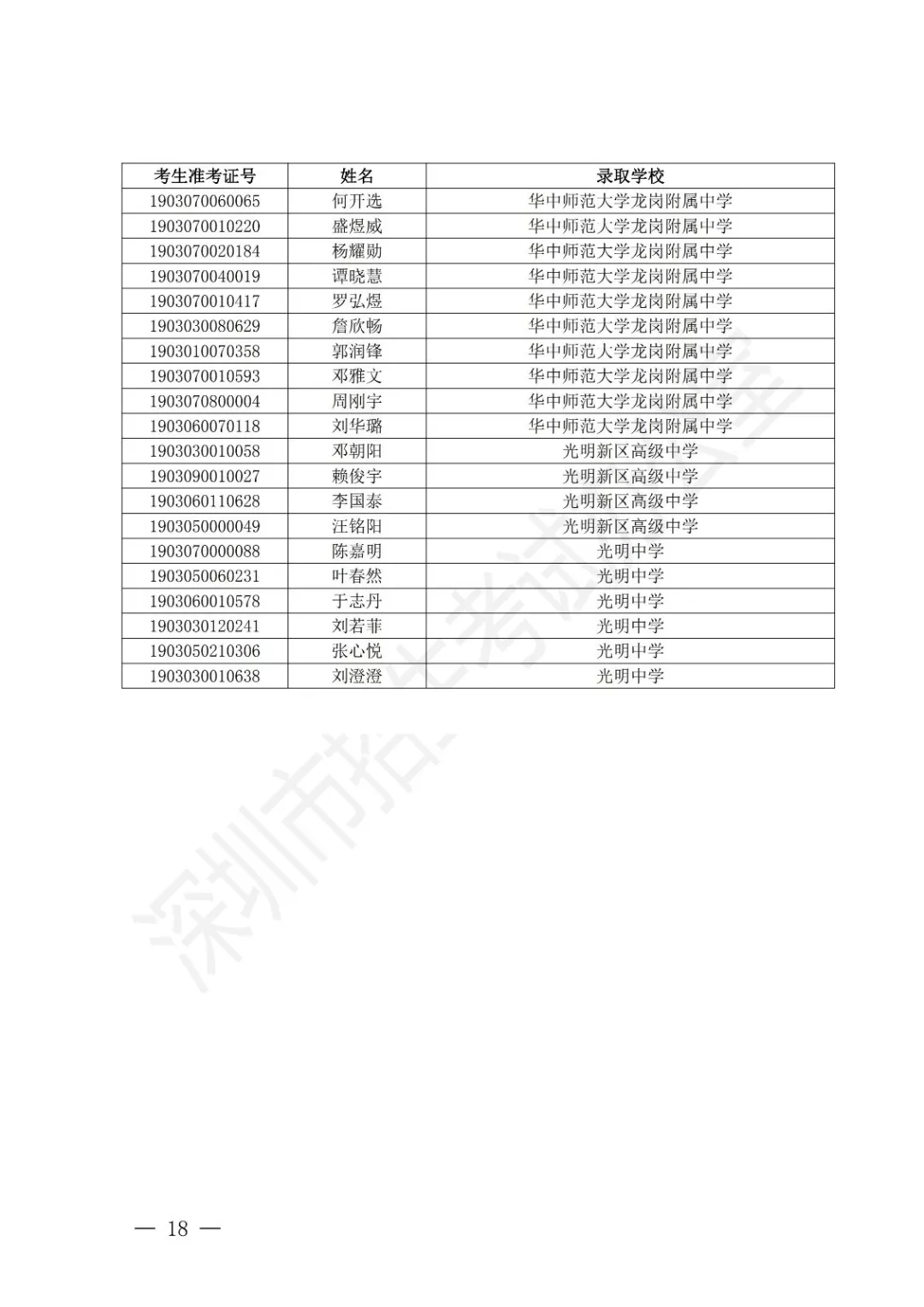 深圳公布2019年公辦高中特色團隊錄取標準 附錄取名單