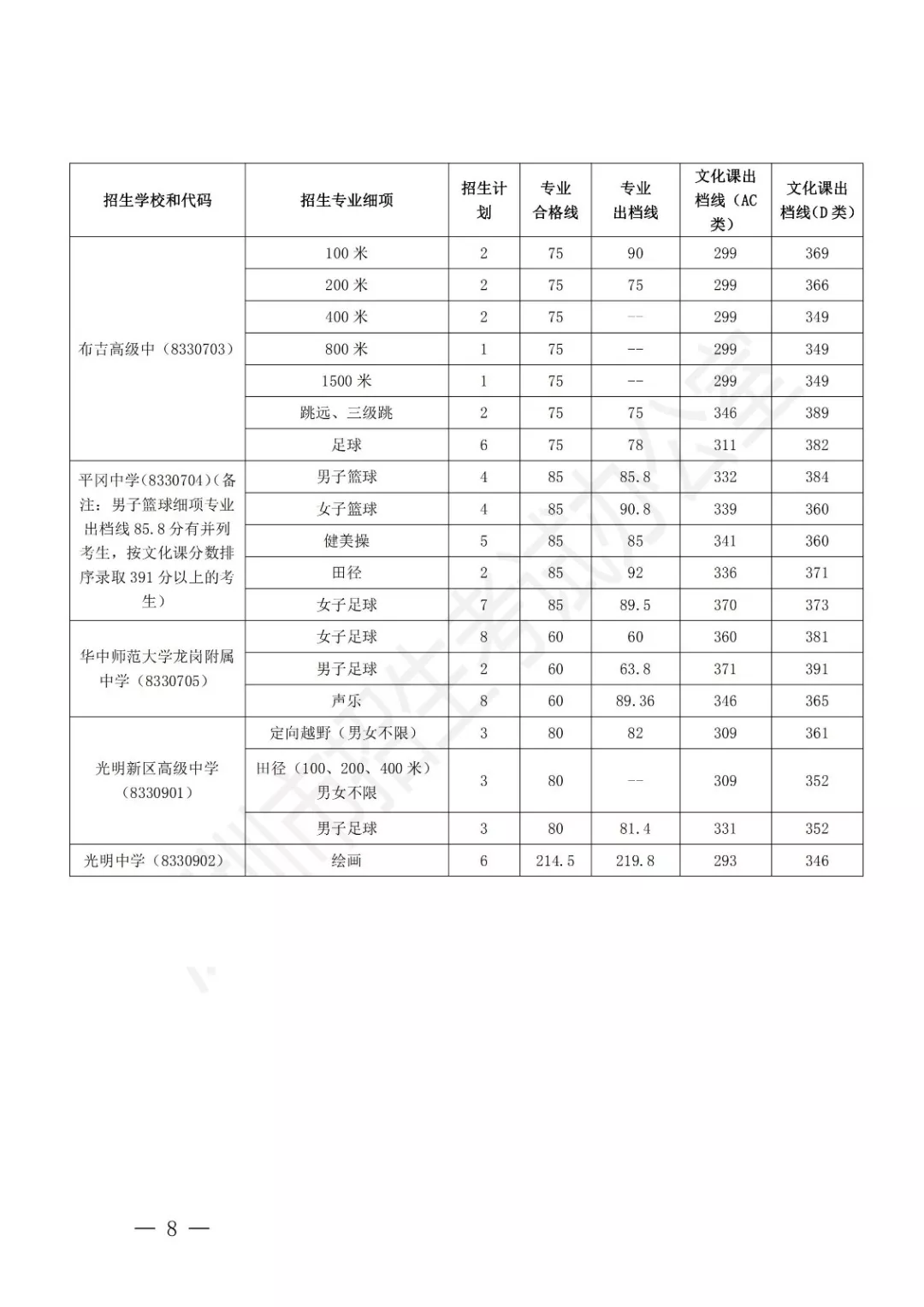 深圳公布2019年公辦高中特色團隊錄取標準 附錄取名單
